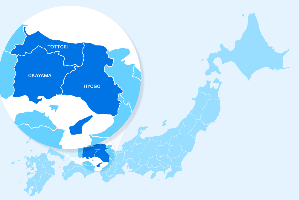 兵庫県を中心に、岡山県・鳥取県に対応しています。